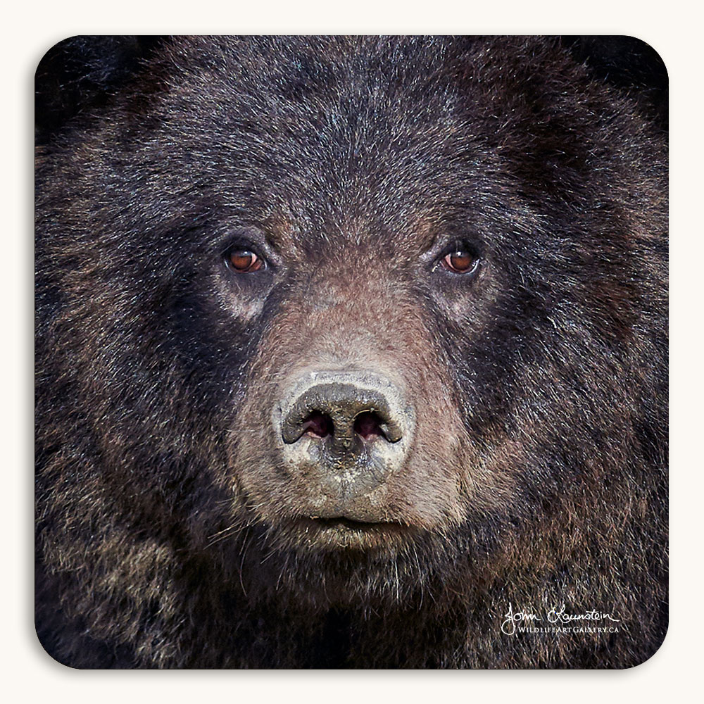 As the fall days grew shorter ahead of winter’s arrival, John and Jenaya met a pair of Grizzly Bears digging in the Yukon soil for roots. Each morning the late-season gardeners were found further down the valley, expertly sniffing out their favourite fall delicacies. Both were absolutely stunning bears, but John was completely taken by the regal look of this northern prince and the dark tones of his luxurious coat. His nose still wet with mud from his latest excavation, he looked up with a long gaze into the bright glass of John’s lens.